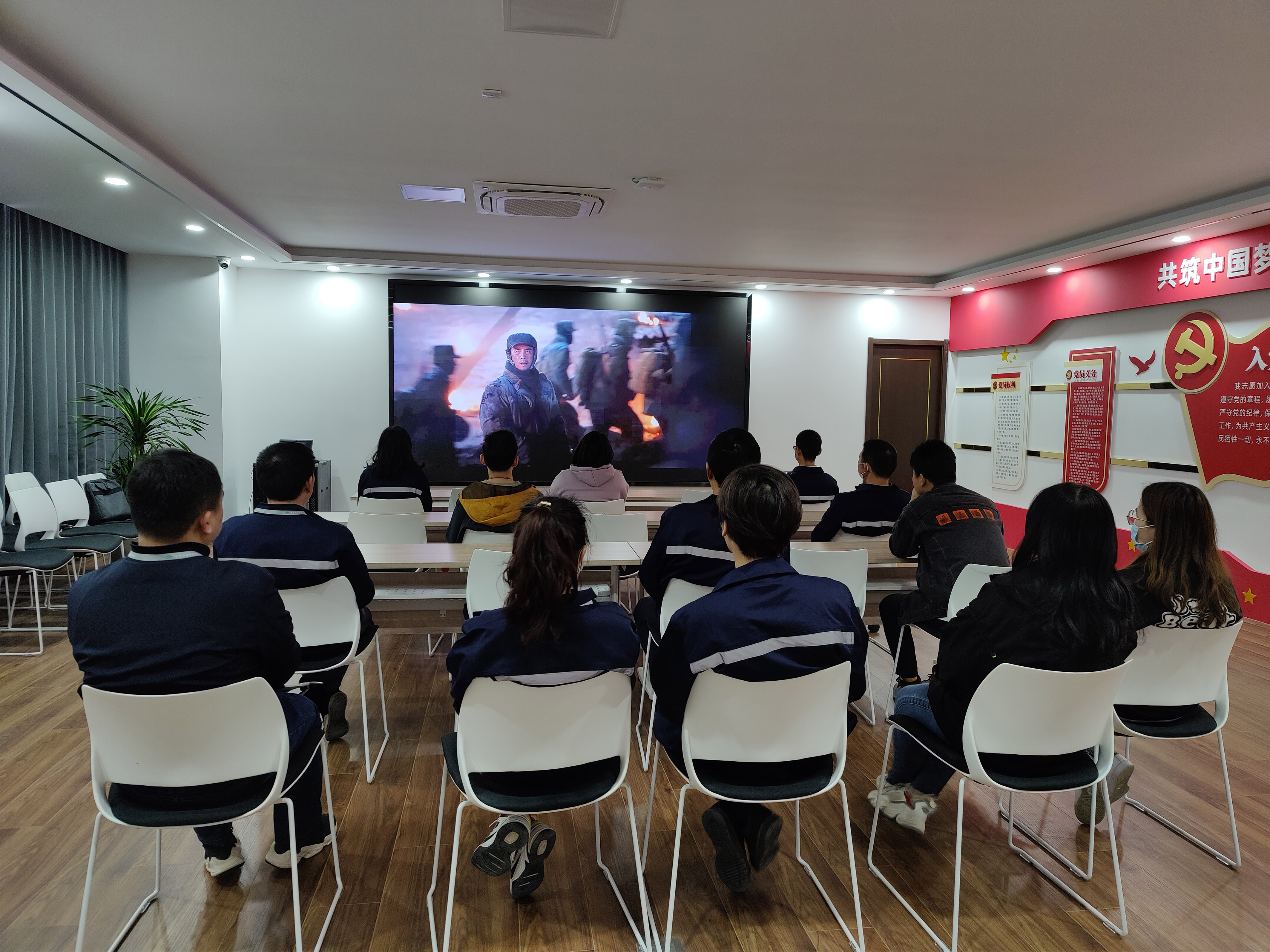 2022年4月16日,集團(tuán)部分黨員代表、入黨積極分子在四樓信息化中心觀看抗美援朝《長津湖之水門橋》。該片以抗美援朝戰(zhàn)爭第二次戰(zhàn)役中的長津湖戰(zhàn)役后期著名的水門橋戰(zhàn)役為背景 ,講述了在結(jié)束新興里和下碣隅里的戰(zhàn)斗之后,七連戰(zhàn)士們又一次更為艱巨的任務(wù)。