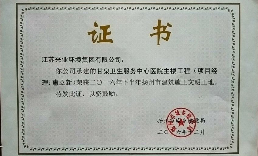 2016年下半年揚州市建筑施工文明工地