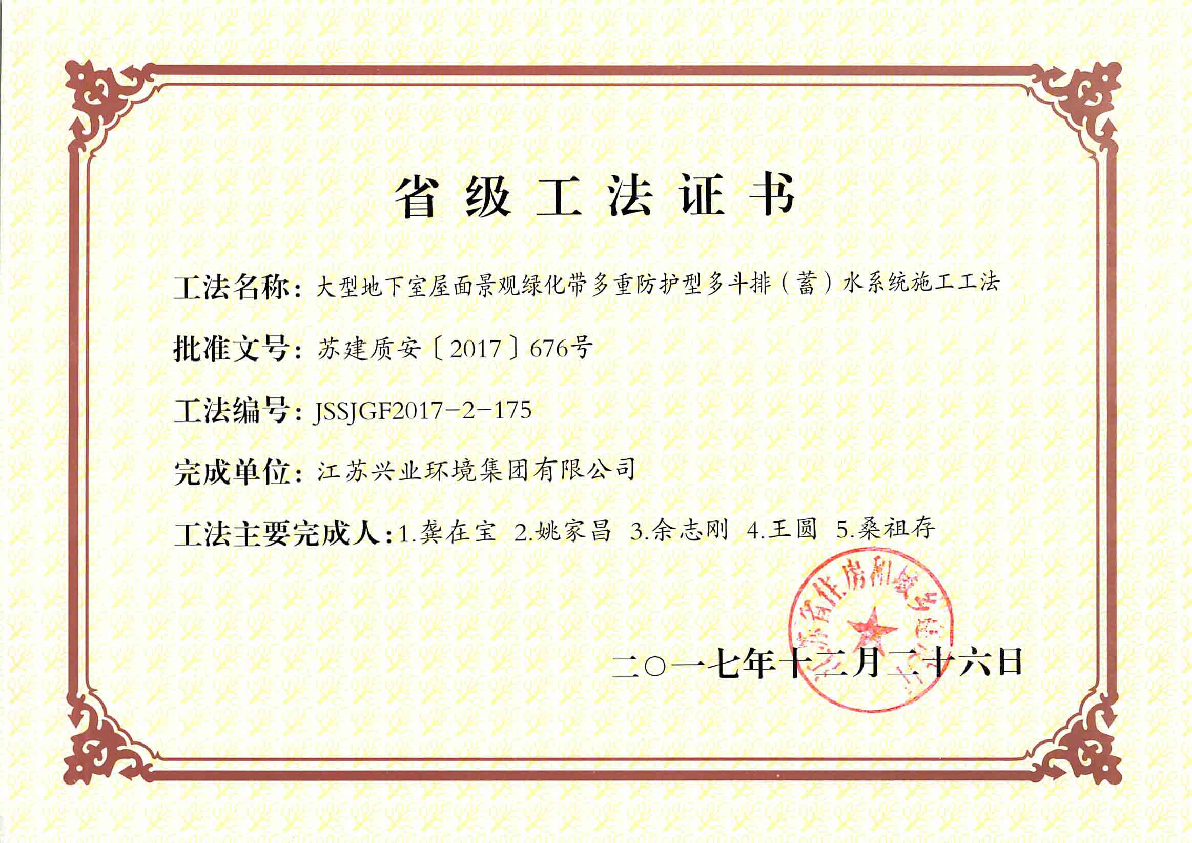 2017年度江蘇省省級工法